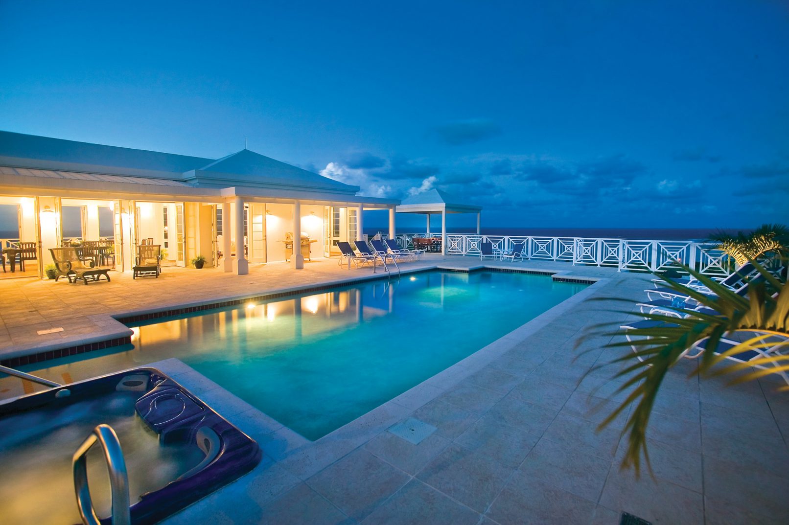 This St. Croix vacation villa makes the most of its spectacular location with 270 degree views over the Caribbean Sea & Salt River Bay’s ecological preserve. The house was conceived to provide an oasis of personal peace and tranquility by connecting its occupants to the inherent beauty of the surrounding land, sea, and sky. Via its siting, all spaces throughout the house remain linked to ocean views. The house was integrated into a steep hillside, and the resulting composition is a series of small bedroom pavilions, arcades, and open spaces, which step down the hillside.