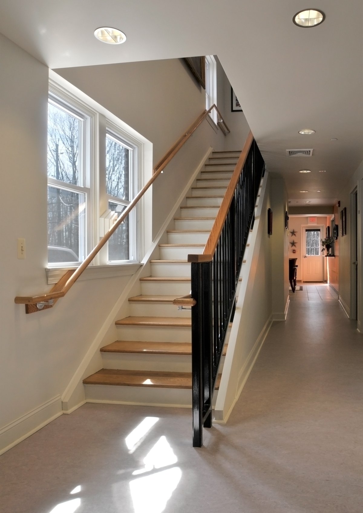 The existing ROTC facilities were to be relocated under a compressed schedule so the old offices could be demolished to make way for a new campus building. An existing 7200 s.f., 2-story structure composed of multiple incongruous additions of varying floor levels and construction systems needed to be molded into a coherent whole to serve as the new facility. This necessitated a complete overhaul of all of the building systems, including plumbing, HVAC and electrical. A special HVAC system was selected due to minimal available clearances above the ceiling. Specialized structural work was required to facilitate new floor openings, align floor levels, as well as provide a new egress stairwell.