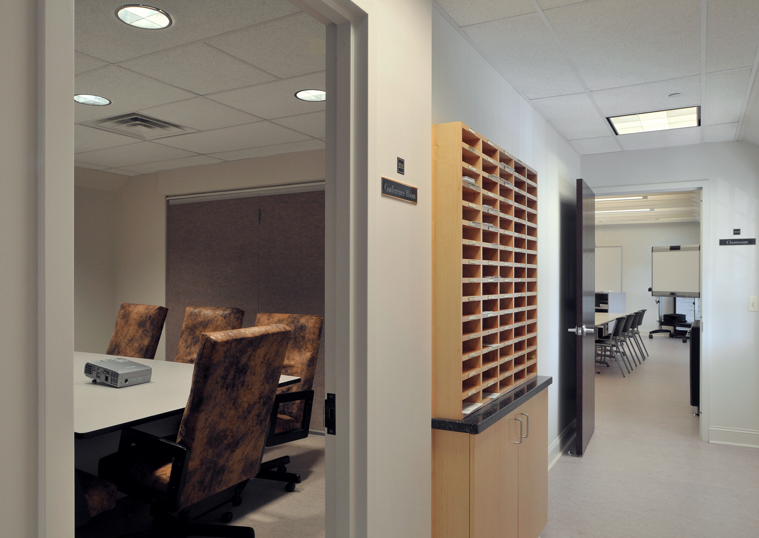 By making a careful and judicious use of available space, some of it doing double-duty, the building program was successfully accommodated. Consistent finish materials throughout both floors of the building serve to help unify the building as a whole. The project was fast-tracked and the project was successfully completed on-schedule. As a result, demolition was able to proceed on schedule at ROTC’s former location.