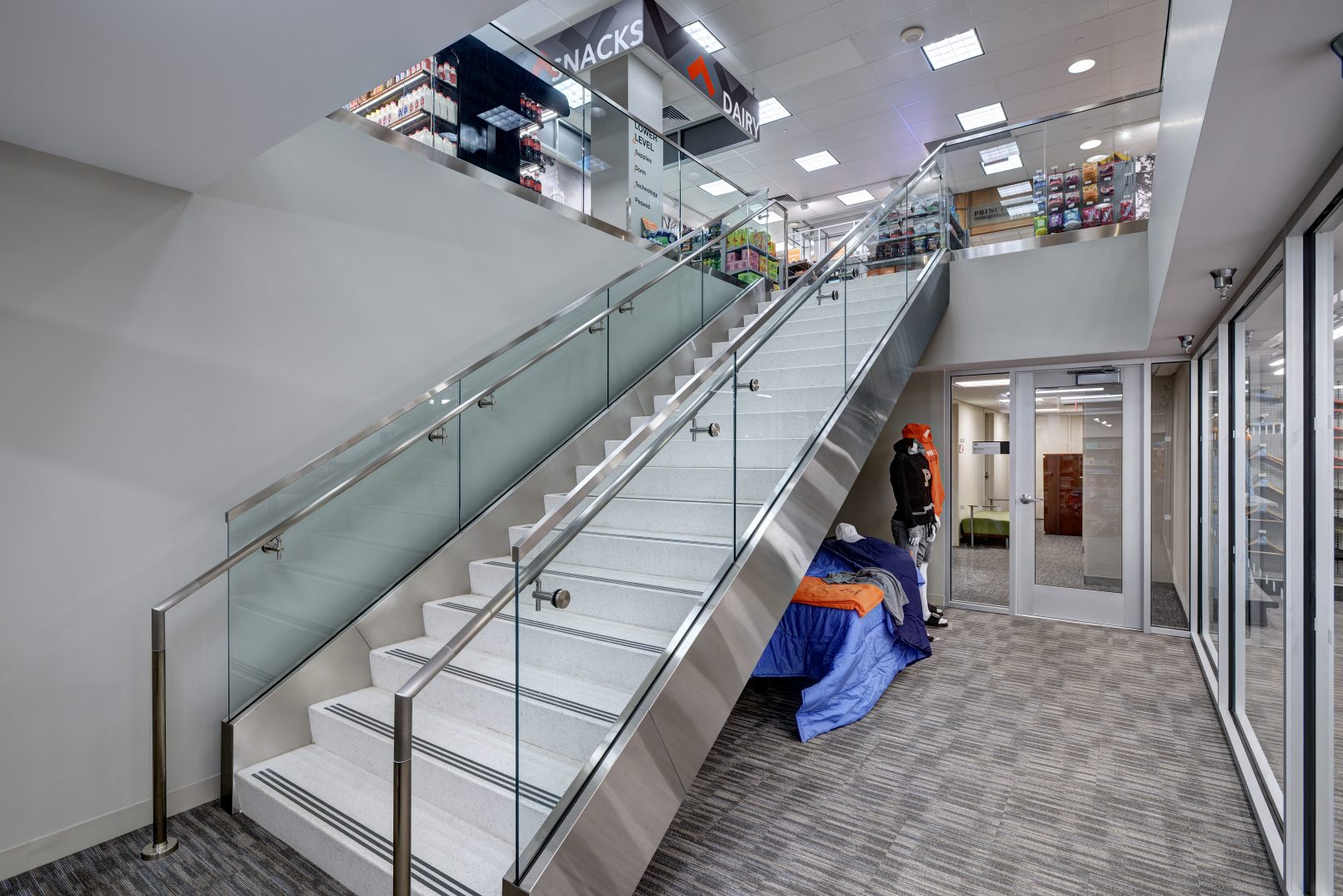 The project represented a complex renovation of 10,600 s.f. of existing retail space on two floors of Princeton University’s campus store. The project intent was to provide a face-lift of the existing space, add new retail functions within that existing space, and craft new, additional retail space. Former basement rough storage space was transformed into upscale retail space. In addition to a multi-phased project implementation, the project scope entailed a significant relocation of basement utilities and the challenging insertion of a new open stairwell into the building’s structural steel framework. Resolving building code issues required some sophisticated problem-solving. A multitude of diverse participants had to be successfully coordinated within the design and construction phases on a tight timeframe. Throughout all of the renovation work, the University Store continued its retail operations. The completed project opened on schedule, and has been extremely well received by all parties, including the store’s current and long-term customers.