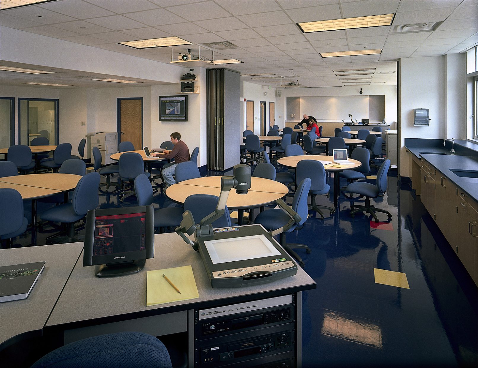 The facility contains highly flexible science classroom facilities that can be readily rearranged, conference facilities, and distance-learning infrastructure for broadcasting presentations beyond the University. Part of the facility also consists of a curved area for studying, display of reading materials, and access to faculty offices. Natural light enhances the entire learning center and is generously provided through the row of windows on each side of the center, filtering into the interior offices through glass curtain walls, offering exterior views. As a whole, this provides a high-tech environment offering a comfortable, yet energizing teaching and learning environment.
